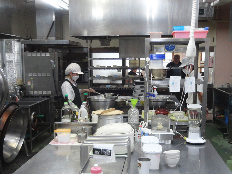 高齢化する施設利用者が、無理なく食事をすることができるように、施設設備には高圧鍋やミキサーなど設置しています。また、食中毒を起こさないように、HACCPに基づく衛生管理を徹底しております。